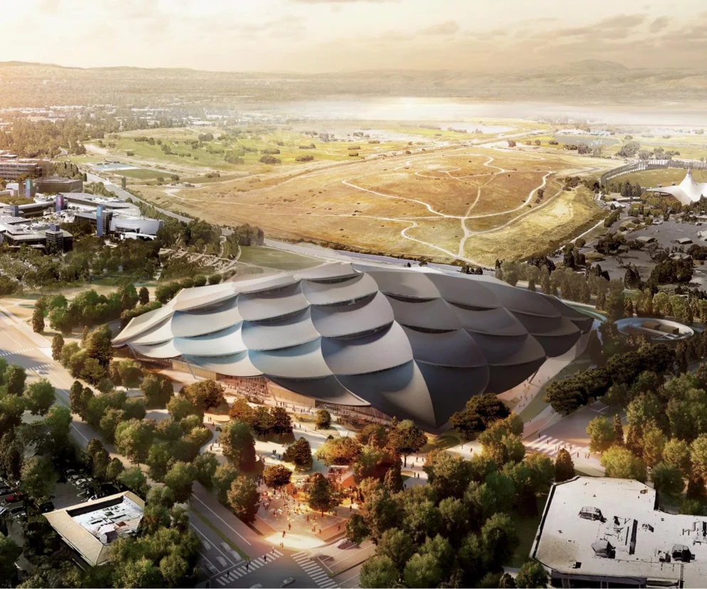 W pierwszych szkicach kompleks przypominał zestaw szklanych gór – poszczególne budynki przykryto przeźroczystymi namiotami, pod którymi widoczne były stosy pięter biurowych. Takie podejście odpowiadało na główne oczekiwania inwestora odnośnie maksymalnej elastyczności – pod wielkimi dachami można było dowolnie konfigurować przestrzenie biurowe czy zupełnie zmieniać przeznaczenie wnętrz. Google chciało też otworzyć się na Mountain View i wprowadzić w swój kampus funkcje dostępne dla mieszkańców miasta: kawiarnie, sklepy, ogólnodostępne ścieżki rowerowe i place.
