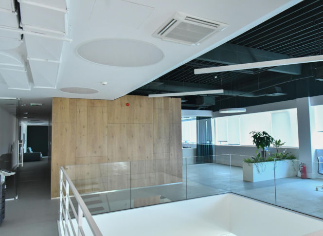 W nowoczesnej sali konferencyjnej widoczne jednostki klimatyzacji to tylko część inteligentnego systemu HVAC. Dzięki czujnikom obecności i jakości powietrza (IoT), system HVAC samodzielnie decyduje o intensywności pracy, zapewniając komfort uczestnikom i radykalnie obniżając koszty energii, gdy sala jest pusta